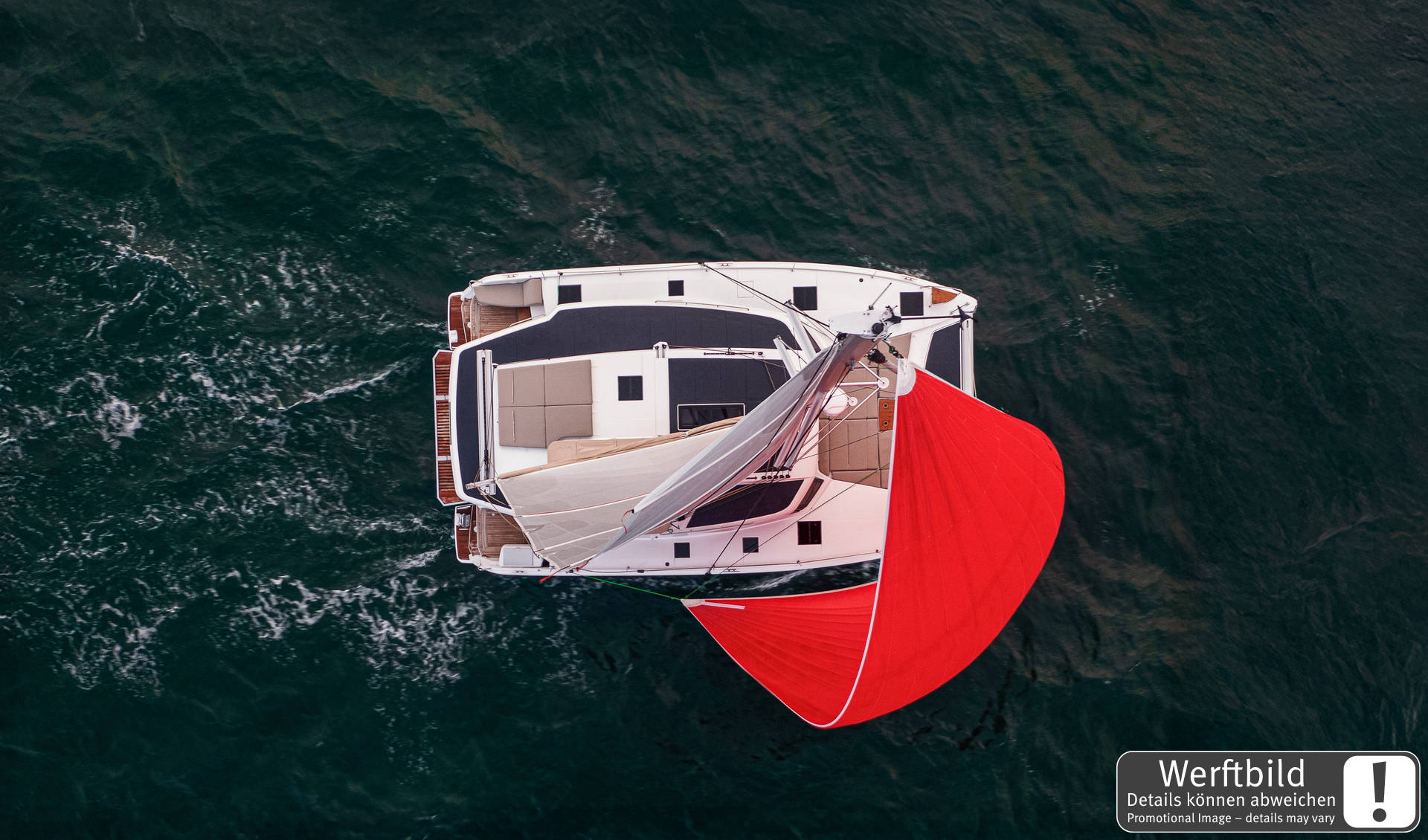 Das Rigg der FP 41 NEW „Gin Mar“ überzeugt mit einer Segelfläche von 65 m² im Großsegel und 35 m² in der Genua (Standardversion). In dieser Yacht-Version sorgt ein durchgelattetes HOOK-Großsegel mit Lazy Jack und Lazy Bag für beste Handhabung. Die elektrische Winsch für das Großfall und die leistungsstarke elektrische Ankerwinsch (1.000 W) erleichtern jedes Manöver. Dank der aufgerüsteten Yanmar 40-PS-Motoren ist auch unter Motor genügend Power vorhanden. Ergänzt wird die Ausstattung durch einen Bugspriet mit Gennaker, Solarpanele, ein 2.000W-Inverter-System sowie einen Generator (9 kW), sodass Sie unabhängig und komfortabel reisen können – perfekt für lange Törns im Segelrevier Mallorca.