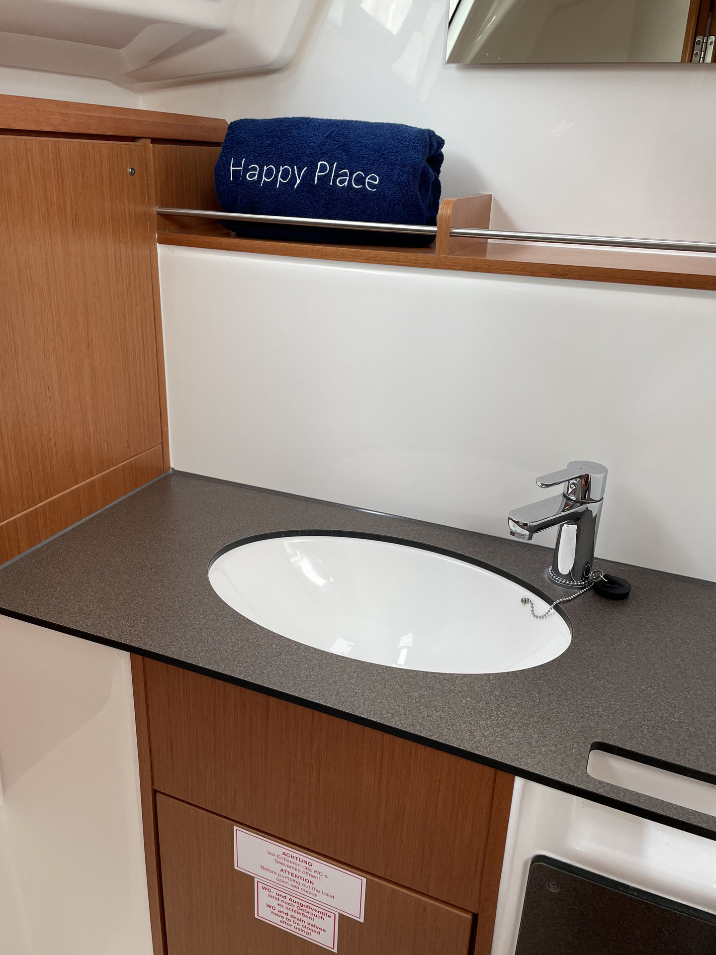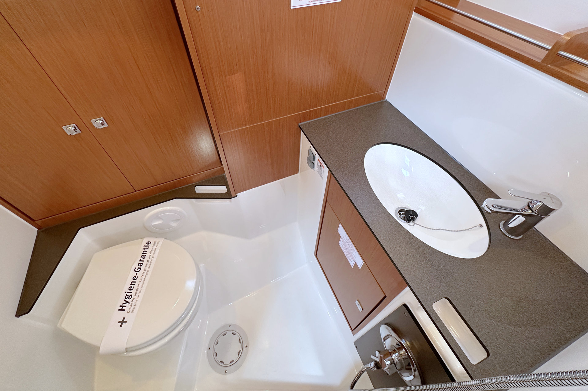Die Maßnahme wirkt sich aber in der Vorschiffskabine nur wenig aus, da es hier genug Reserven gab. Denn ursprünglich sollte hier die Option für eine weitere Nasszelle umgesetzt werden können, es stand also genug Fußraum bereit. Marginalien? Nein. Man wird beim Betrachten der Neuen zwar am Steg nicht zappelnd vor Freunde rückwärts ins Wasser fallen, aber das Boot sieht schlichtweg solide-ordentlich, wenn nicht gar richtig gut aus.